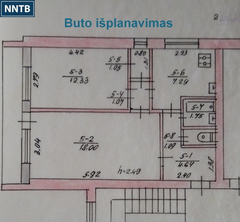 - Bendras plotas –47,22 kv. m; Priklauso 4,39 kv.m. ploto rūsys.