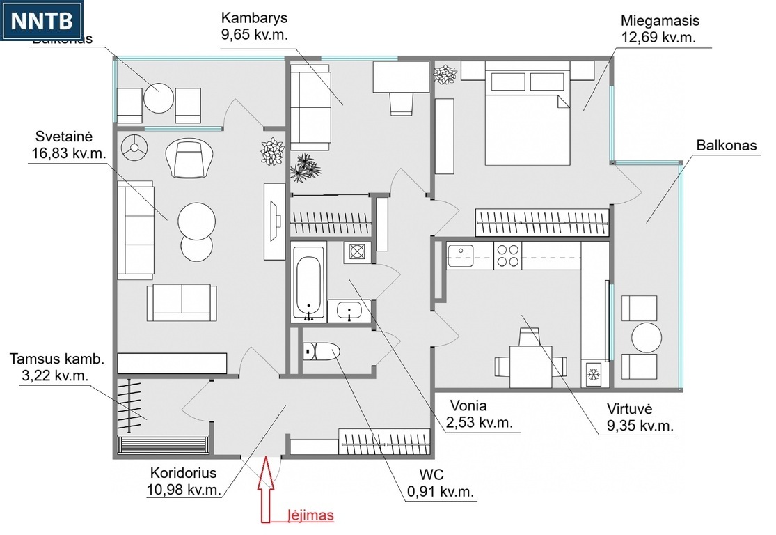Kambarys – 9,69 kv. m