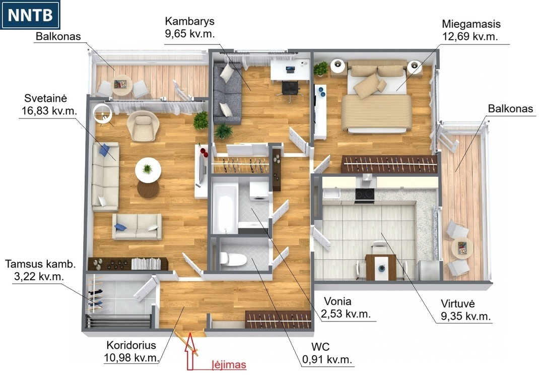 Kambarių skaičius: 3