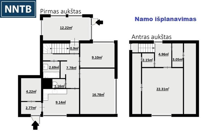 - Šildymas – kietu kuru rūsyje esančiu katilu. Kambariuose įrengti radiatoriai,