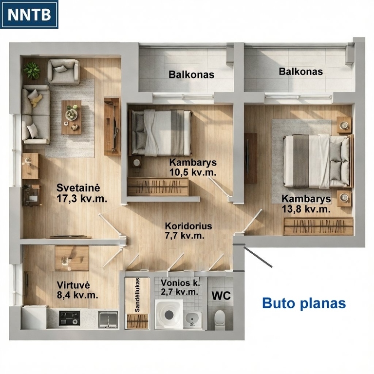 - Kambarių skaičius – 3;