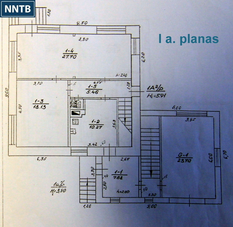 - Namas mūrinis, pastatytas 1971 m., bendras plotas sudaro 194,49 kv.m. Iš jų, rūsio plotas 37 kv.m.