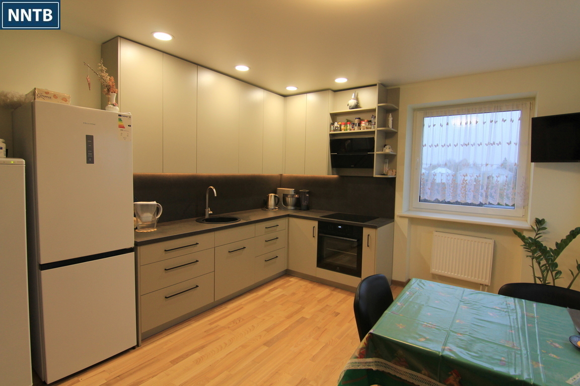 - Šis namas yra puikus pasirinkimas didesnei šeimai arba ieškantiems galimybės gyventi 2 šeimoms viename name. Antrame aukšte įrengta nauja virtuvė su naujais virtuvės baldais.